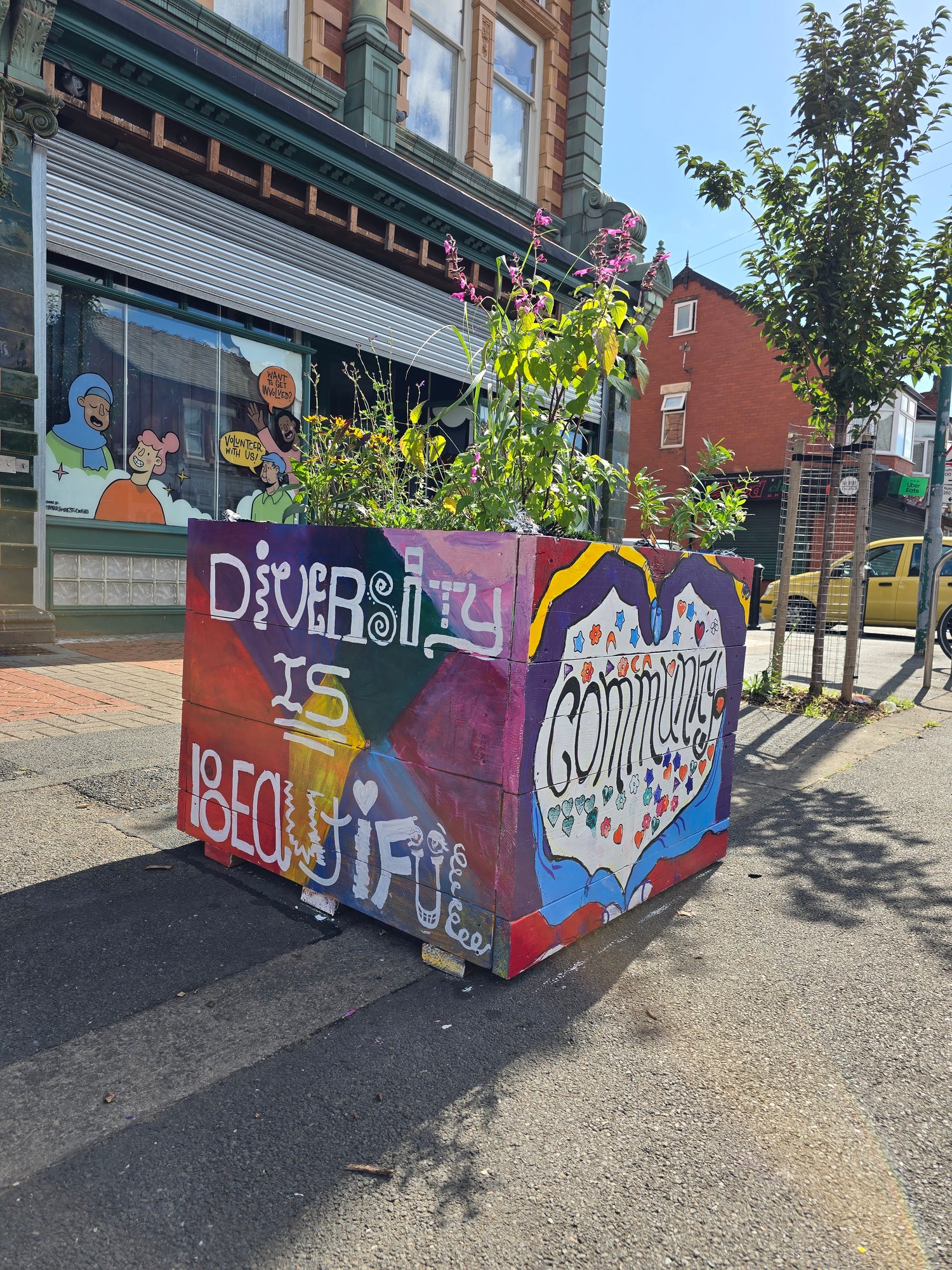 My practice is rooted in joy, cultural expression and the belief that creativity should make people feel seen, uplifted and inspired. As a Black British Ghanaian artist, I draw from a wide mix of influences — Afro-retro motifs, colour psychology, psychedelic art, pop culture, and the visual languages of cities like Manchester. I pour those stories into everything I make.