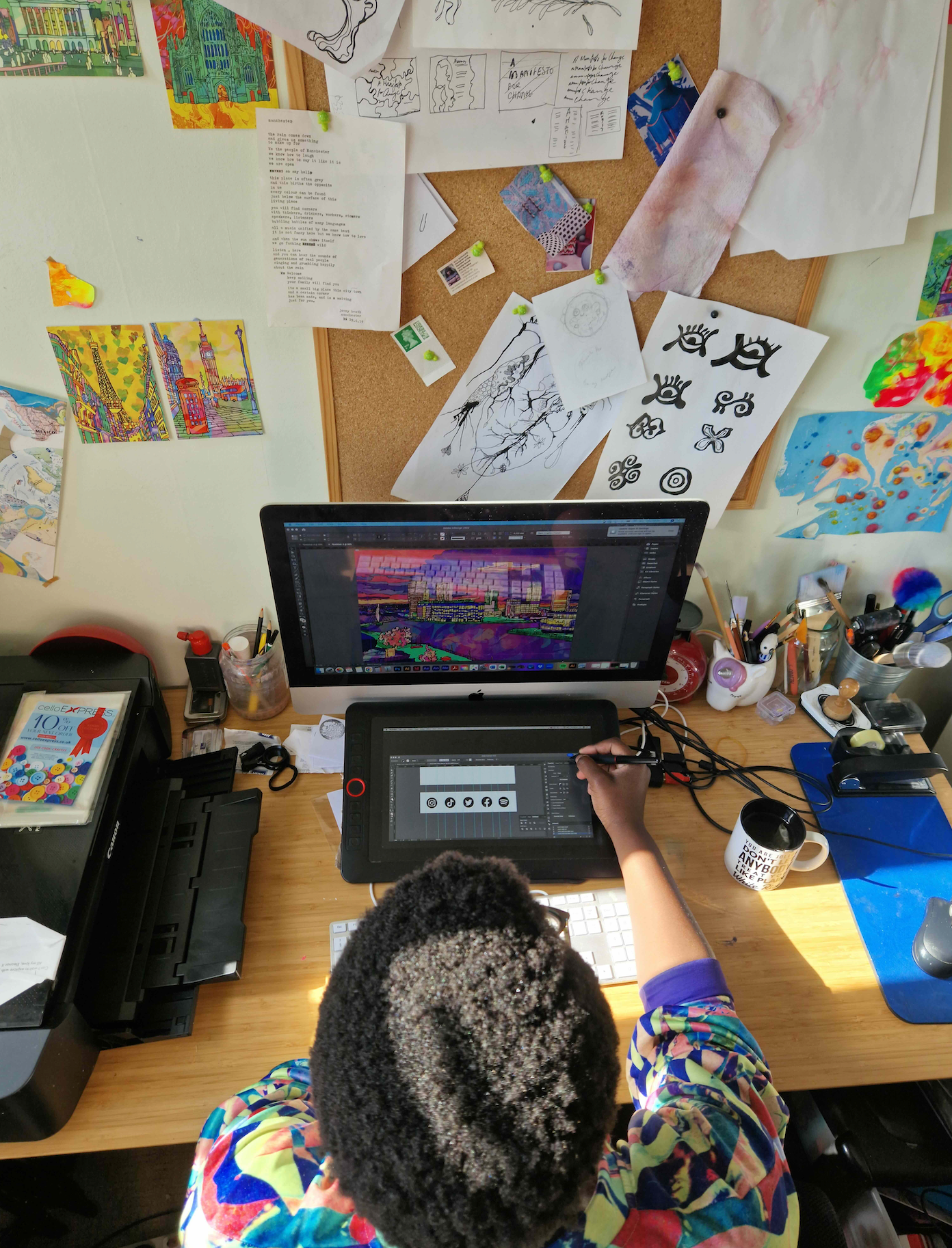 A Manchester-based visual artist, Afro-psychedelic illustrator and graphic designer with a love for bold patterns, vibrant energy and soulful storytelling.